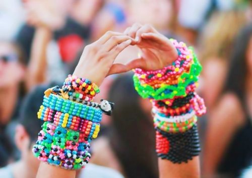 Every teenage girl has gone through a “bracelet phase”. If you haven’t, I’m sure you’ve seen one of your friends with a pile of bracelets up to their elbows. How about bring that trend back with some rave kandi bracelets. People make masks and even bras out of this stuff. Trust me it’s cool.