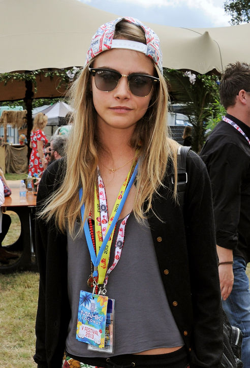 If you can’t get behind the flower crown trend but still want to wear headgear, snapbacks are always popular on the festival scene. Cara Delevingne is often seen wearing them, during and outside festivals.