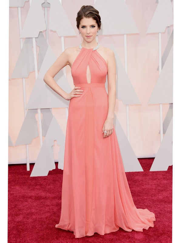 Keava: This custom made peach wonder from Thakoon is amazing. I’m kind of over cut-outs, but the interesting placement keeps it current. The up-do is perfect to show off that amazing neckline, and her soft smokey eye keeps the look from being too cutesy.